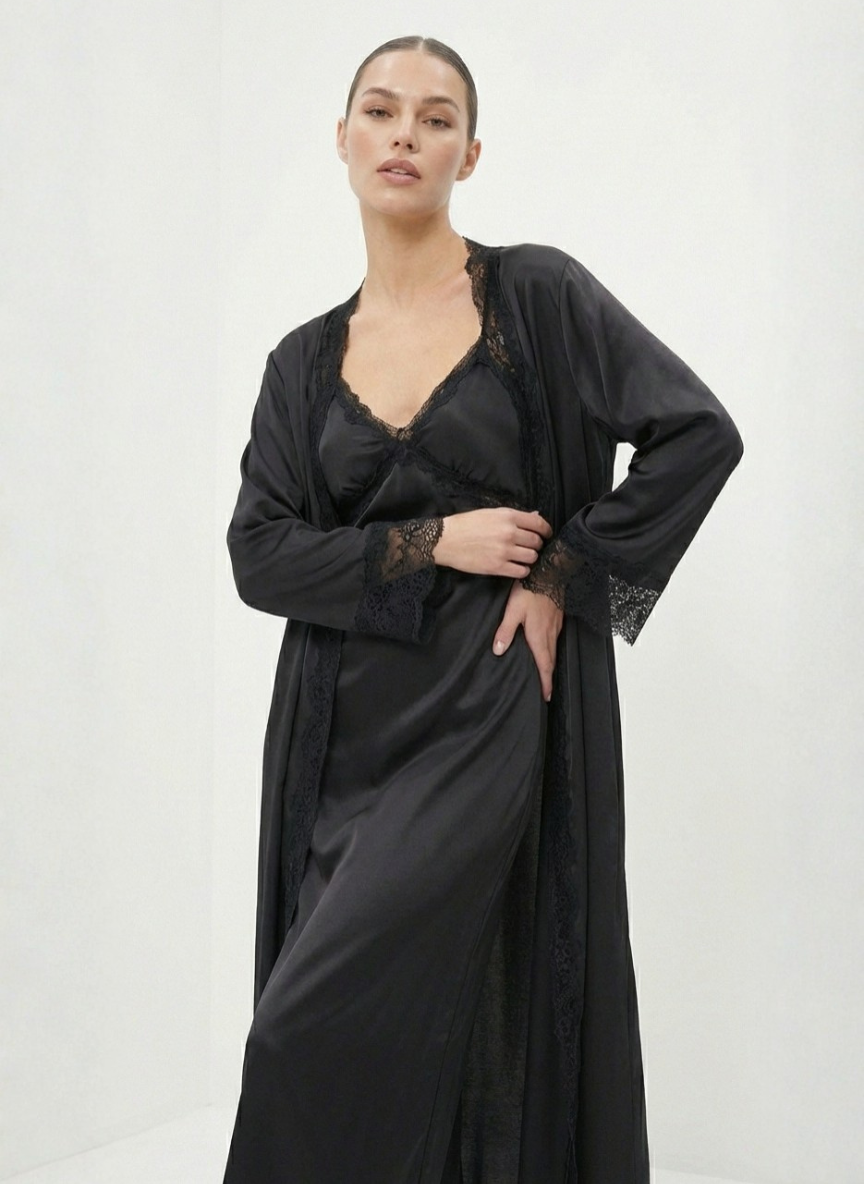The lace trim adds an elegant, feminine touch to the nightdress and robe. It’s subtle yet striking, giving the set a premium feel without overdoing it. A design that’s both sexy and sophisticated.